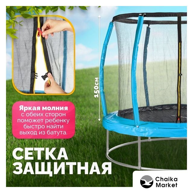 пружинный (каркасный) круглый, диаметр (диагональ): 312 см, нагрузка: 150 кг, сетка