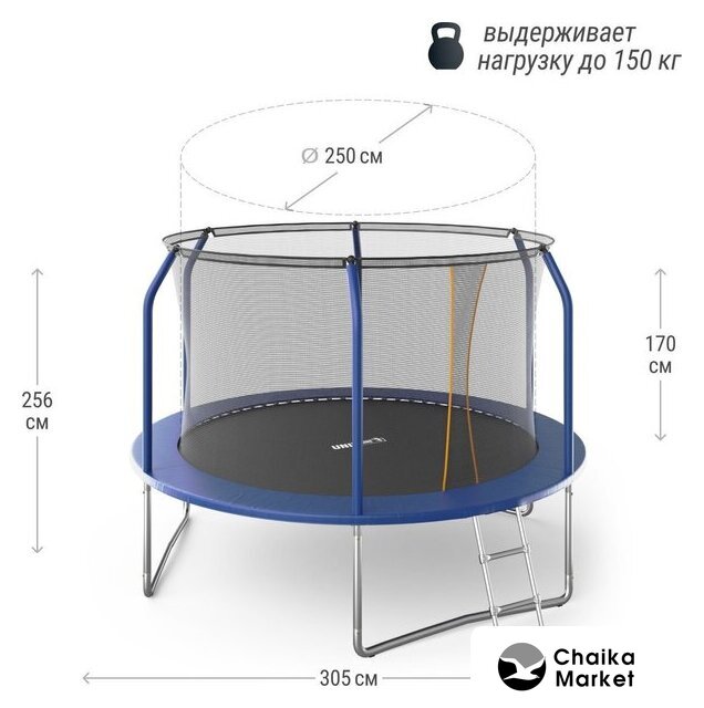 пружинный (каркасный) круглый, диаметр (диагональ): 305 см, нагрузка: 150 кг, с сеткой, с лестницей