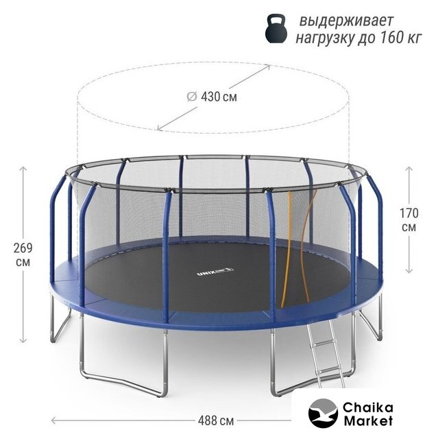 пружинный (каркасный) круглый, диаметр (диагональ): 427 см, нагрузка: 170 кг, с сеткой, с лестницей