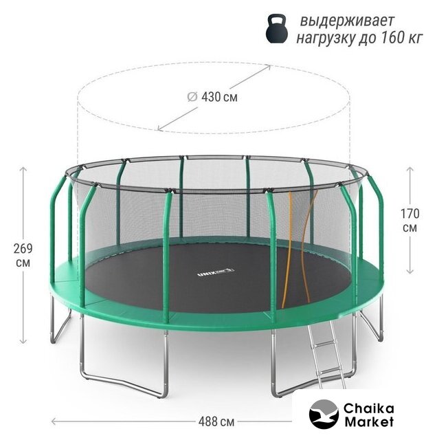 пружинный (каркасный) круглый, диаметр (диагональ): 427 см, нагрузка: 170 кг, с сеткой, с лестницей