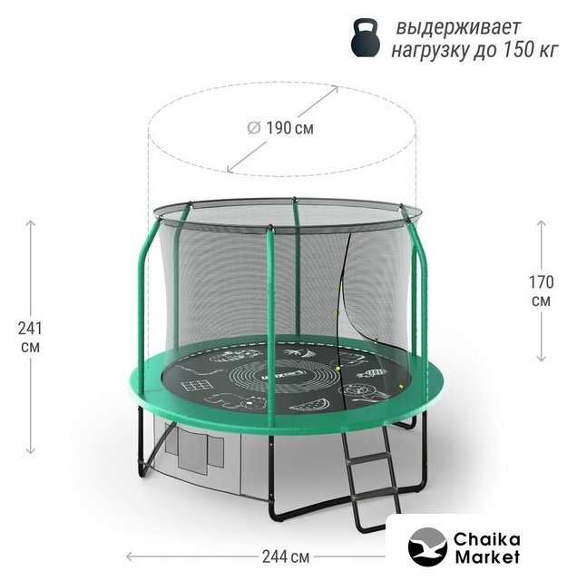 пружинный (каркасный) круглый, диаметр (диагональ): 244 см, нагрузка: 150 кг, с сеткой, с лестницей