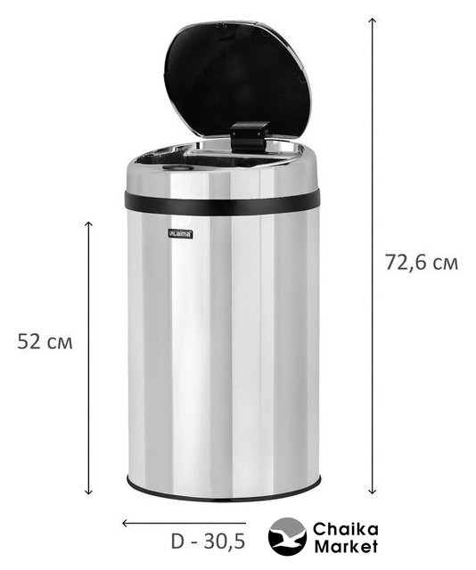 30 л, крышка сенсорная, нержавеющая сталь, цвет: белый