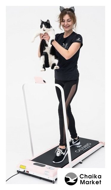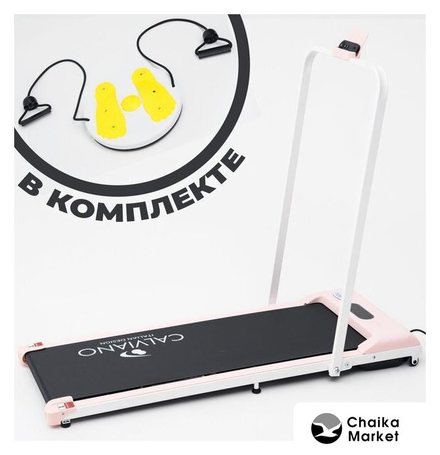 | Особенности | - транспортировочные ролики- подставка под телефон- ручка (фиксируется, чтобы опустить поручень нужно открутить болты с каждой стороны)- дисплей над беговым полотном- пульт дистанционного управления- в комплекте Твист (диск здоровья с эспандерами) |