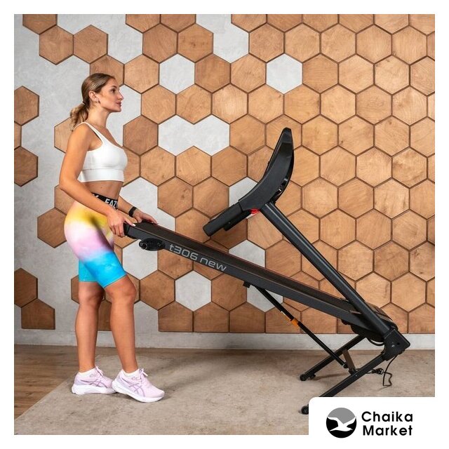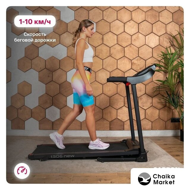 электрическая беговая дорожка, без регулировки угла наклона, полотно: 39×107 см, скорость движения: 1–8 км/ч, без программ тренировок