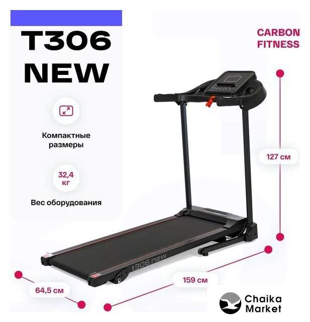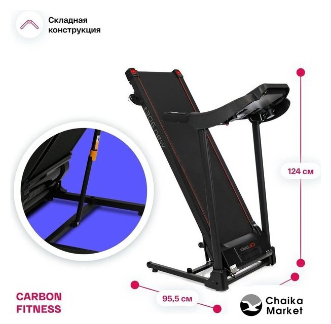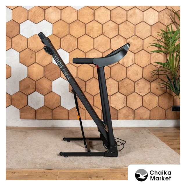 электрическая беговая дорожка, ручная ступенчатая регулировка угла наклона, полотно: 42×122 см, скорость движения: 1–19 км/ч, 12 программ тренировок