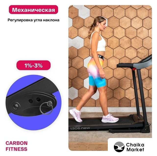 электрическая беговая дорожка, ручная ступенчатая регулировка угла наклона, полотно: 40×110 см, 12 программ тренировок