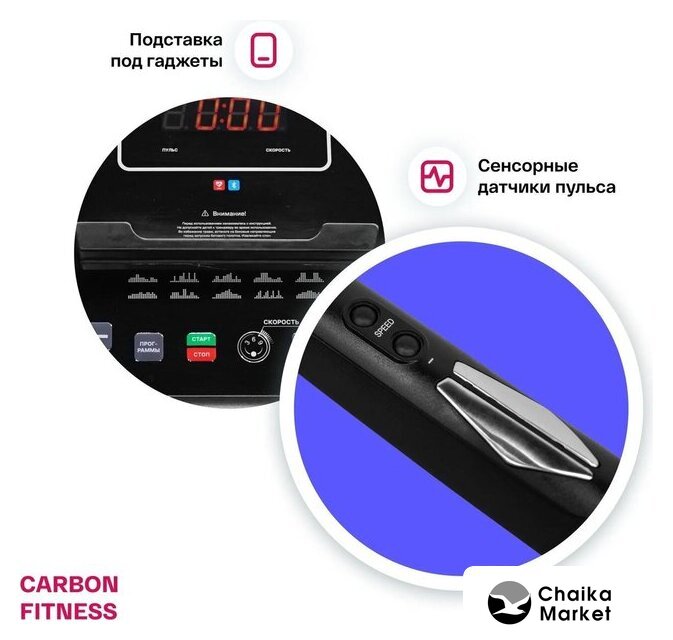 Отображаемая информация | время тренировки, пройденная дистанция, текущая скорость, расход калорий, пульс |