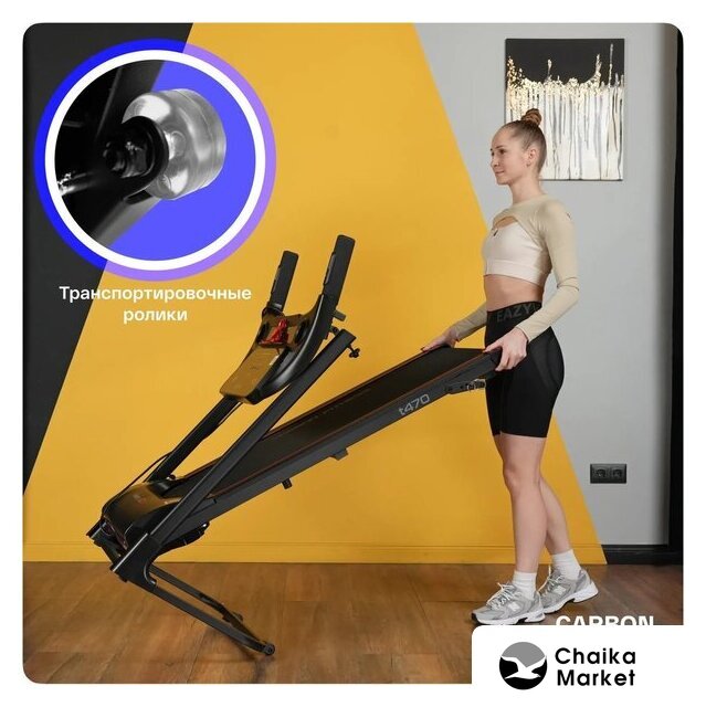 электрическая беговая дорожка, ручная ступенчатая регулировка угла наклона, полотно: 40×110 см, скорость движения: 1–10 км/ч, 12 программ тренировок
