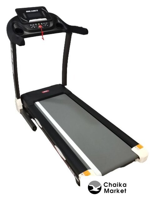 электрическая беговая дорожка, автоматическая регулировка угла наклона, полотно: 42×120 см, скорость движения: 0.8–12 км/ч, 14 программ тренировок