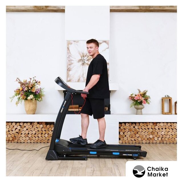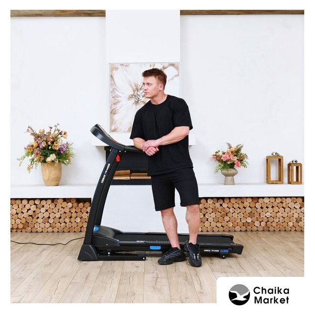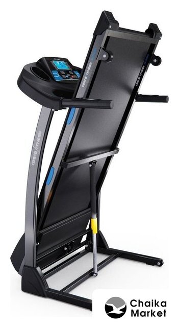 электрическая беговая дорожка, ручная ступенчатая регулировка угла наклона, полотно: 42×115 см, скорость движения: 0.8–14.8 км/ч, 12 программ тренировок