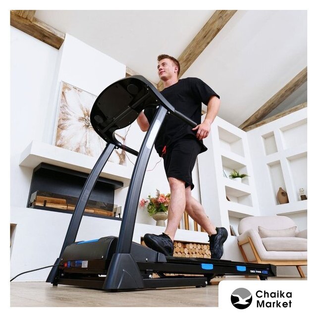 электрическая беговая дорожка, автоматическая регулировка угла наклона, полотно: 42×115 см, скорость движения: 1–14 км/ч, 12 программ тренировок