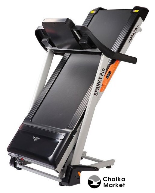 электрическая беговая дорожка, автоматическая регулировка угла наклона, полотно: 46×121 см, скорость движения: 0.8–16 км/ч, 20 программ тренировок