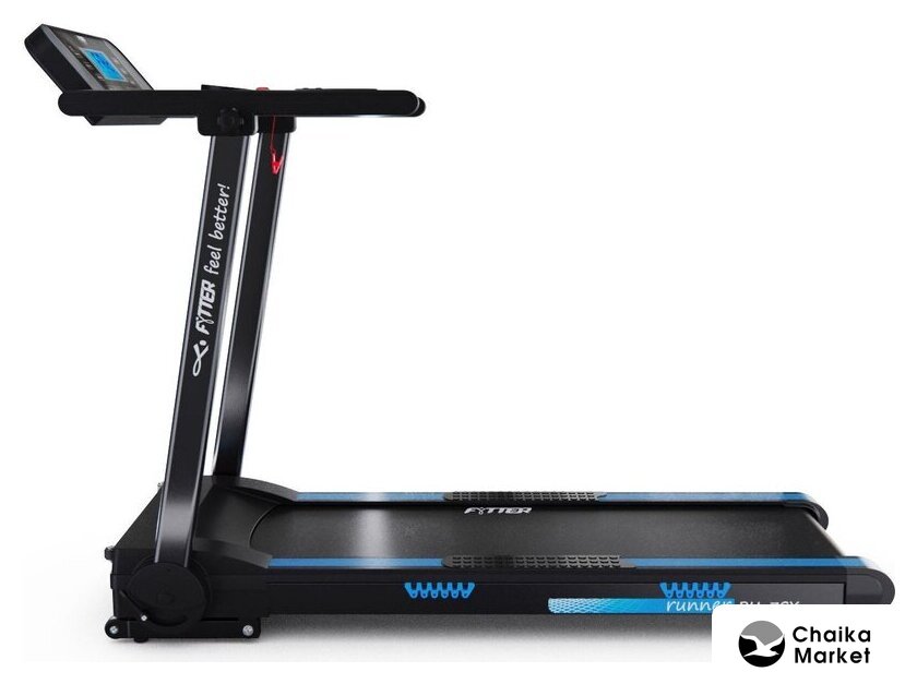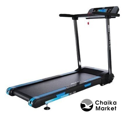 электрическая беговая дорожка, ручная ступенчатая регулировка угла наклона, полотно: 41×121 см, скорость движения: 1–14 км/ч, 12 программ тренировок