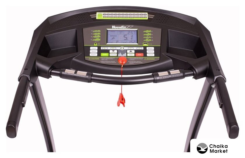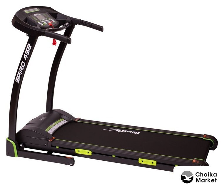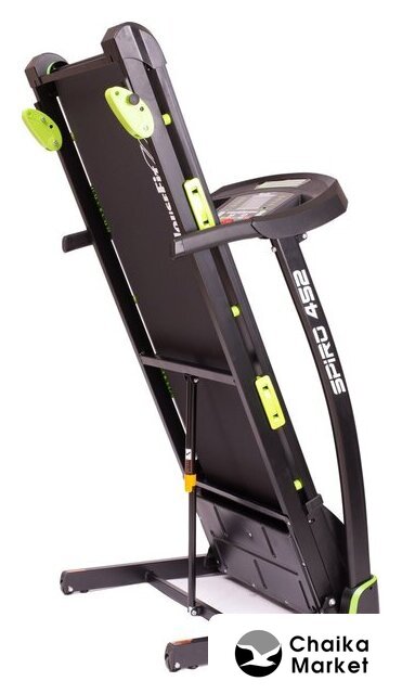 электрическая беговая дорожка, ручная ступенчатая регулировка угла наклона, полотно: 46×121 см, скорость движения: 0.8–16 км/ч, 20 программ тренировок