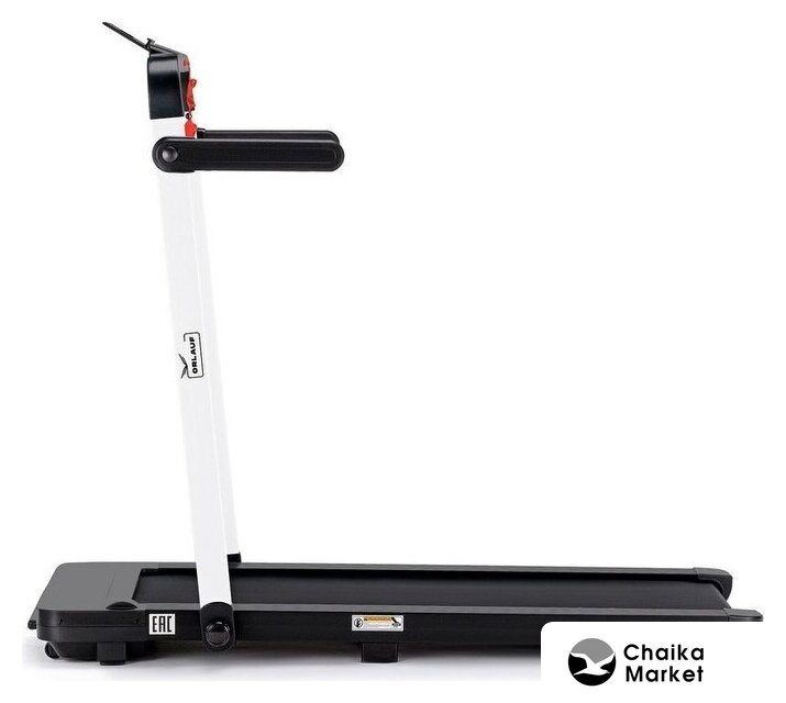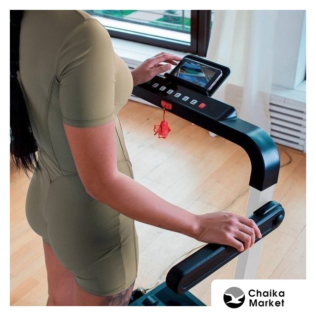 электрическая беговая дорожка, ручная ступенчатая регулировка угла наклона, полотно: 40×110 см, скорость движения: 0.5–12 км/ч, 12 программ тренировок