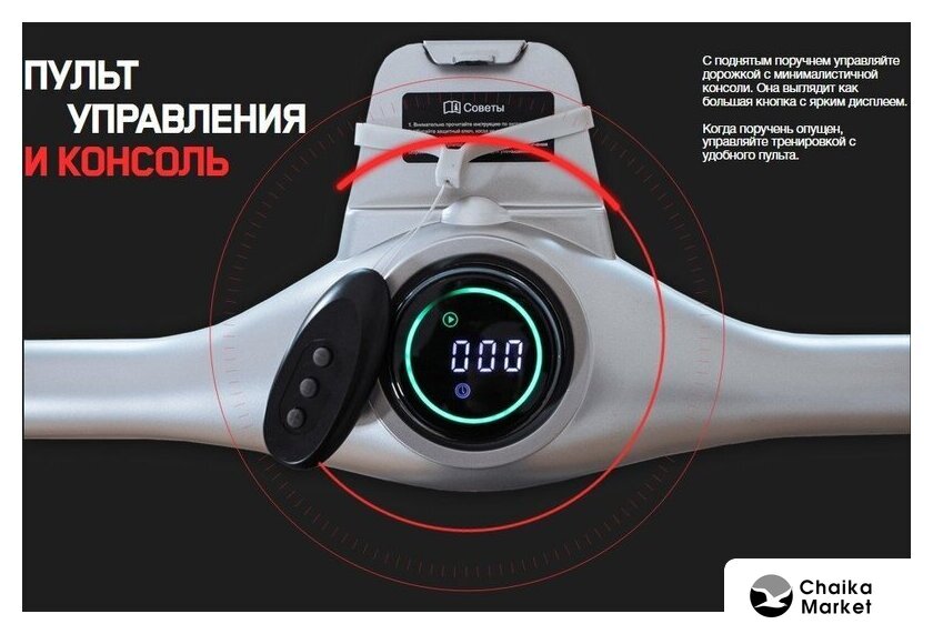 электрическая беговая дорожка, ручная ступенчатая регулировка угла наклона, полотно: 46×121 см, скорость движения: 0.8–16 км/ч, 20 программ тренировок