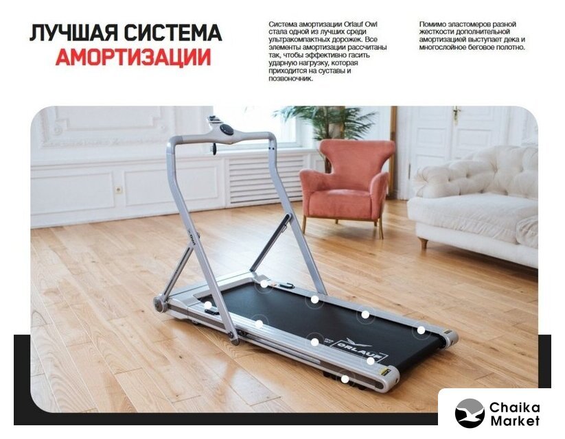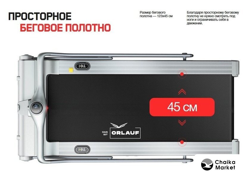 электрическая беговая дорожка, ручная ступенчатая регулировка угла наклона, полотно: 45×122 см, скорость движения: 16 км/ч, 41 программа тренировок