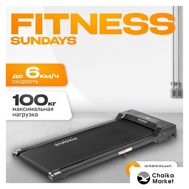 электрическая беговая дорожка, без регулировки угла наклона, полотно: 38×100 см, скорость движения: 1–6 км/ч