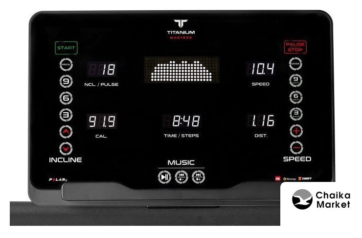 Показания на дисплее | прошедшее время, пройденное расстояние, текущая скорость, угол наклона, пульс, жироанализатор (Body Fat), количество шагов, программный профиль, сожжено калорий |