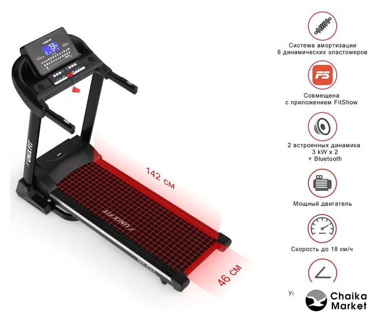 электрическая беговая дорожка, полотно: 42×128 см, скорость движения: 1–16 км/ч, 82 программы тренировок