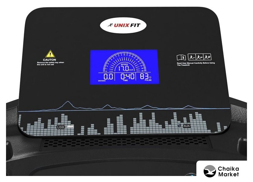 электрическая беговая дорожка, автоматическая регулировка угла наклона, полотно: 50×145 см, скорость движения: 1–22 км/ч, 24 программы тренировок