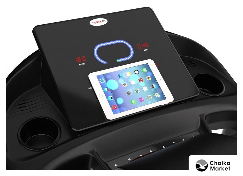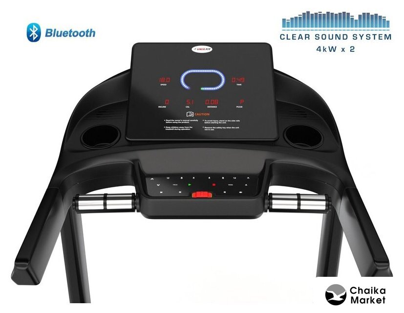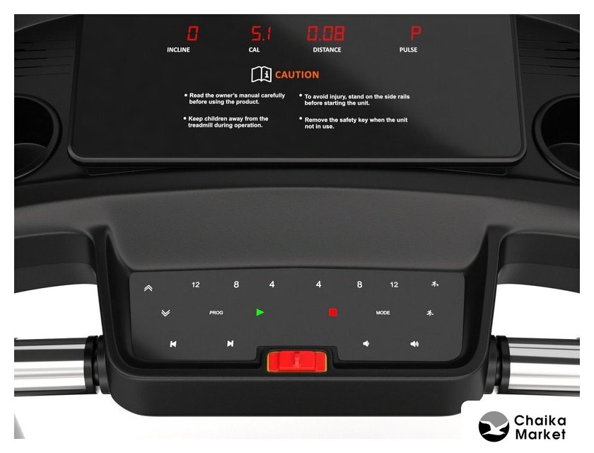 Показания на дисплее | время, скорость, дистанция, калории, пульс, наклон бегового полотна, быстрое переключение скорости с шагом 4, 8, 12 км/ч и переключение угла наклона бегового полотна с шагом 4, 8, 12% |