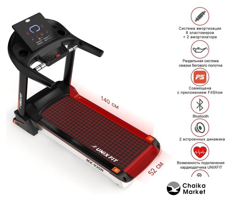 электрическая беговая дорожка, автоматическая регулировка угла наклона, полотно: 52×140 см, скорость движения: 1–20 км/ч, 36 программ тренировок