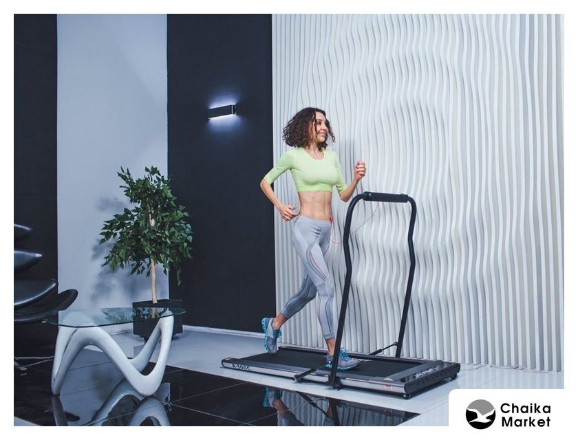 электрическая беговая дорожка, автоматическая регулировка угла наклона, полотно: 45×120 см, скорость движения: 1–16 км/ч, 47 программ тренировок