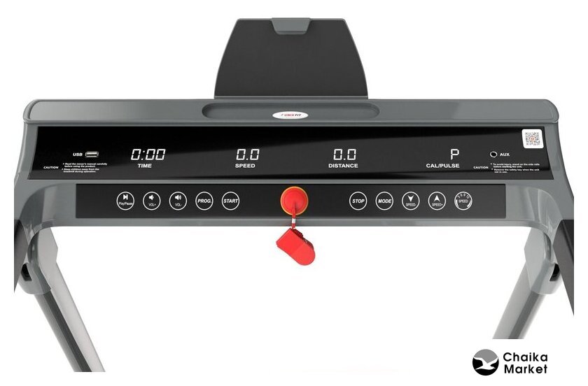 электрическая беговая дорожка, автоматическая регулировка угла наклона, полотно: 42×120 см, скорость движения: 0.8–14.8 км/ч, 15 программ тренировок