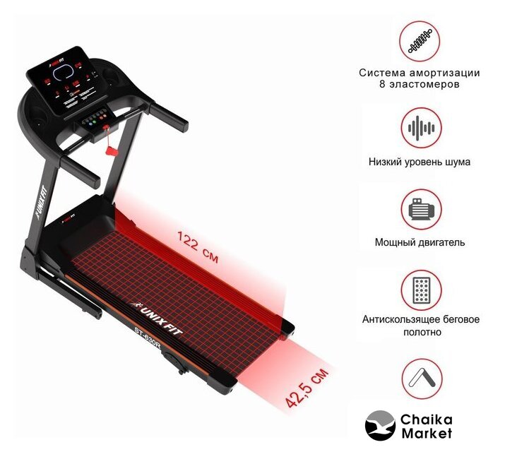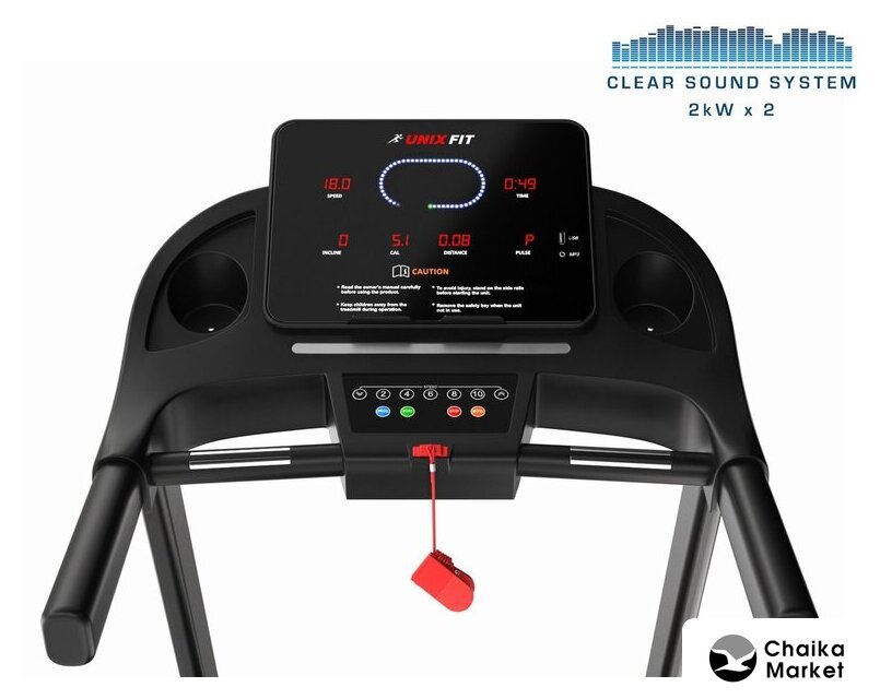 Особенности | Двухслойное беговое полотно толщиной 1,6 мм. Длина зоны для бега составляет 122 сантиметра, а ширина - 42,5 сантиметра. Максимальная скорость бега на данной модели составляет 14 км/ч. Так же, модель оборудована двумя динамиками суммарной мощностью 4 кВ в возможностью подключения внешних устройств с помощью входов USB и AUX. |