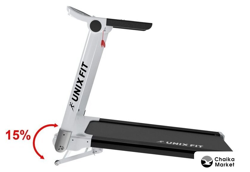 электрическая беговая дорожка, ручная ступенчатая регулировка угла наклона, полотно: 45×122 см, скорость движения: 16 км/ч, 41 программа тренировок