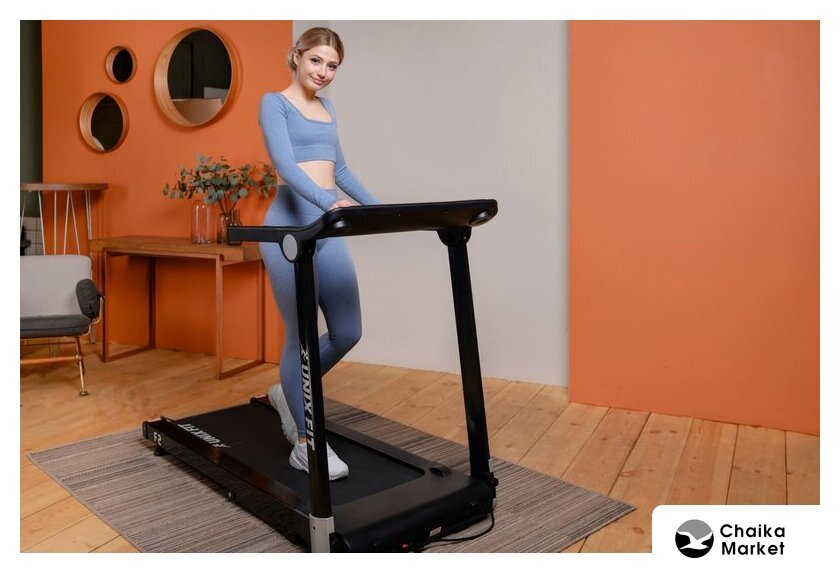 электрическая беговая дорожка, ручная ступенчатая регулировка угла наклона, полотно: 45×122 см, скорость движения: 16 км/ч, 41 программа тренировок