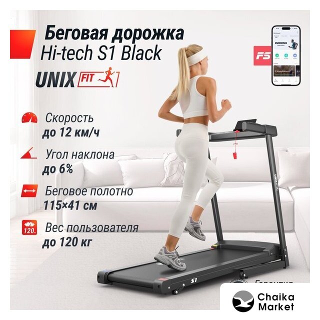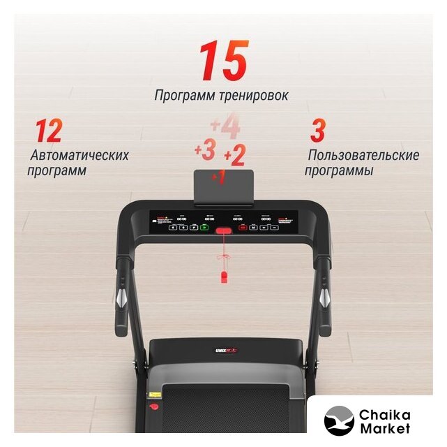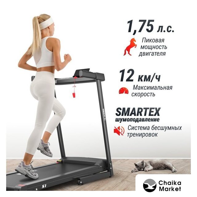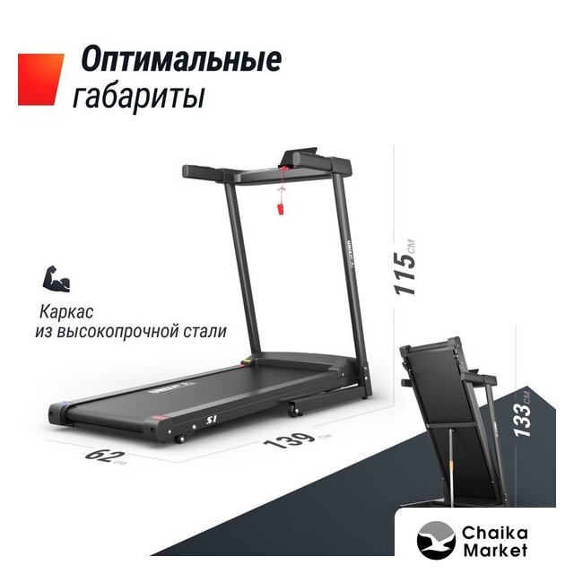 электрическая беговая дорожка, полотно: 44×120 см, скорость движения: 0.8–14 км/ч, 12 программ тренировок