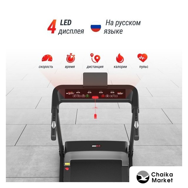 Отображаемая информация | время тренировки, пройденная дистанция, текущая скорость, расход калорий, пульс |