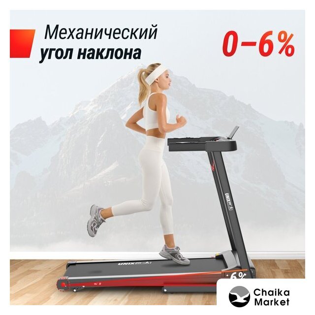 электрическая беговая дорожка, ручная ступенчатая регулировка угла наклона, полотно: 42×120 см, скорость движения: 1–14 км/ч, 12 программ тренировок