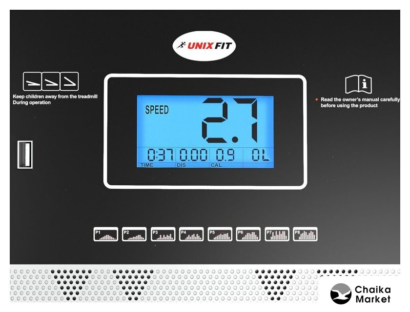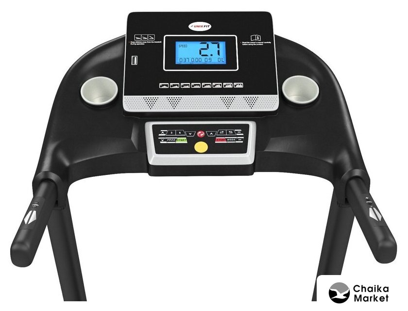 электрическая беговая дорожка, без регулировки угла наклона, полотно: 46×125 см, скорость движения: 0.8–14 км/ч, 14 программ тренировок
