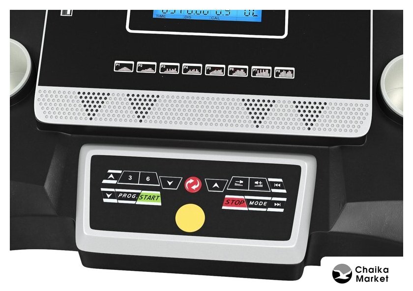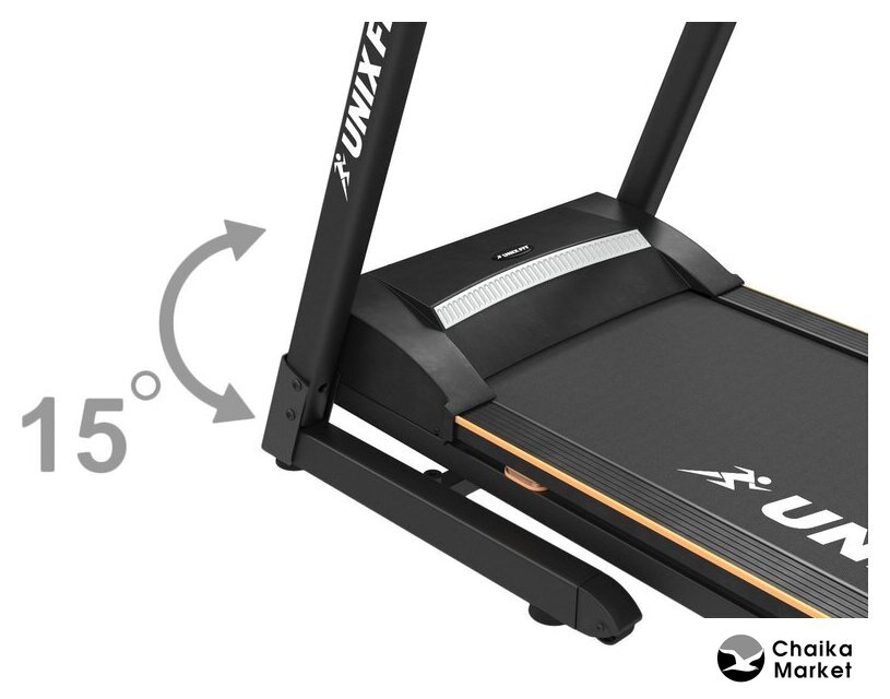 электрическая беговая дорожка, автоматическая регулировка угла наклона, полотно: 45×125 см, скорость движения: 0.8–16.8 км/ч, 15 программ тренировок