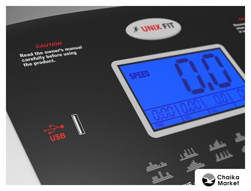 электрическая беговая дорожка, без регулировки угла наклона, полотно: 46×125 см, скорость движения: 0.8–14 км/ч, 14 программ тренировок
