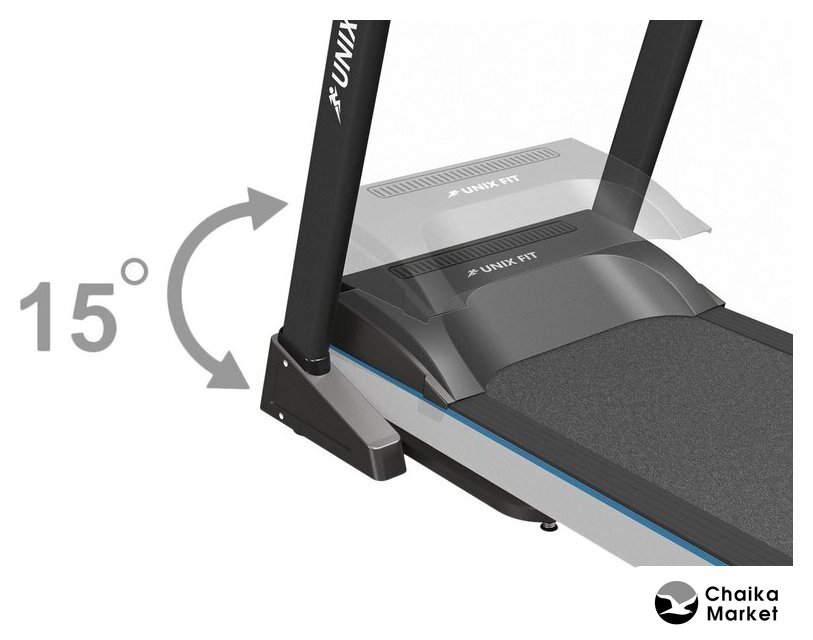 электрическая беговая дорожка, автоматическая регулировка угла наклона, полотно: 42×120 см, скорость движения: 0.8–14.8 км/ч, 15 программ тренировок