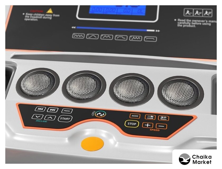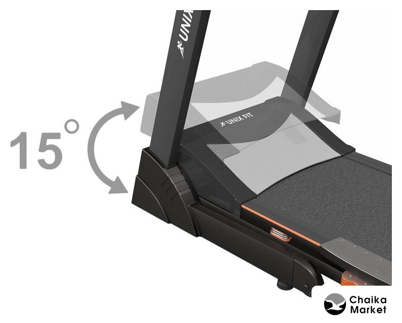 электрическая беговая дорожка, автоматическая регулировка угла наклона, полотно: 50×133 см, скорость движения: 1–18 км/ч, 4 программы тренировок