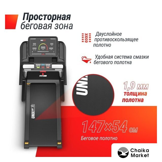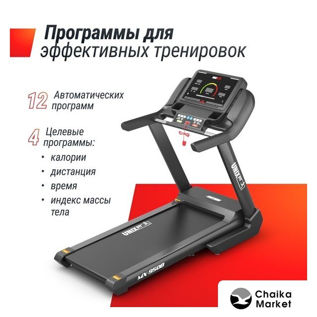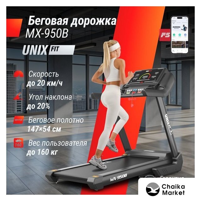 электрическая беговая дорожка, автоматическая регулировка угла наклона, полотно: 51×140 см, скорость движения: 0.8–18 км/ч, 48 программ тренировок