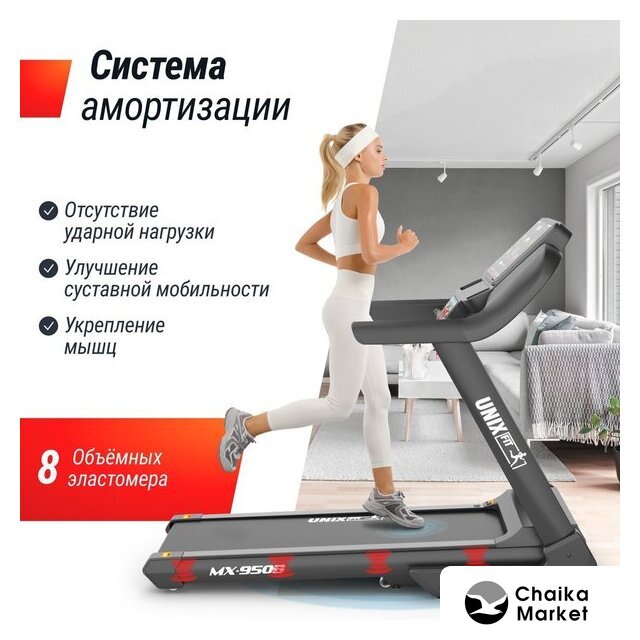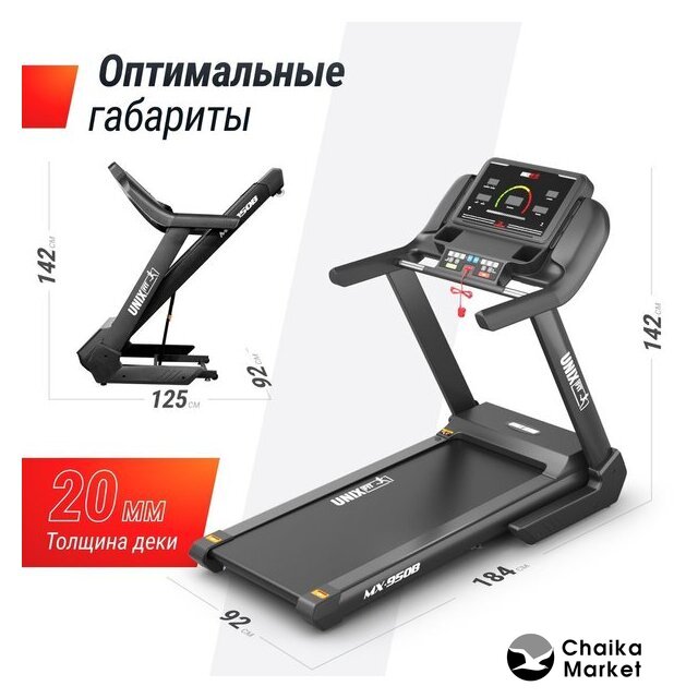 электрическая беговая дорожка, автоматическая регулировка угла наклона, полотно: 58×148 см, скорость движения: 1–20 км/ч, 42 программы тренировок