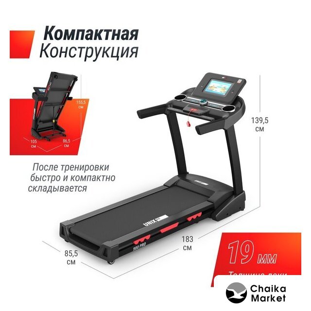 электрическая беговая дорожка, автоматическая регулировка угла наклона, полотно: 52×142 см, скорость движения: 1–18 км/ч, 32 программы тренировок