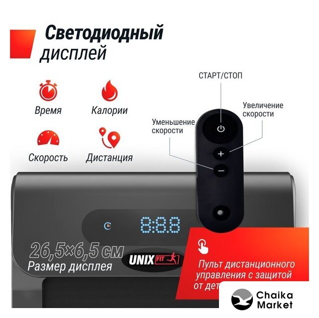 Отображаемая информация | время тренировки, пройденная дистанция, текущая скорость, расход калорий |
