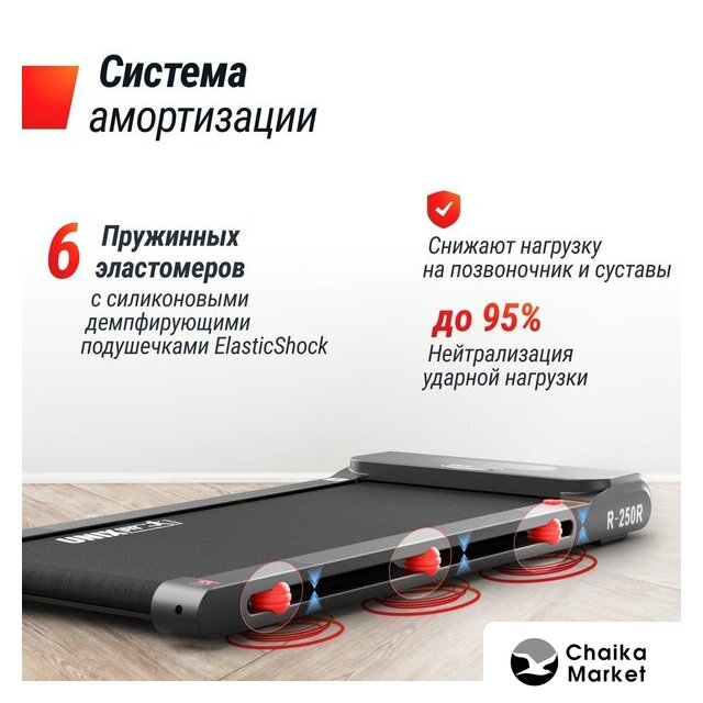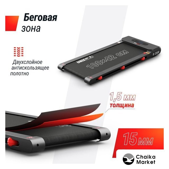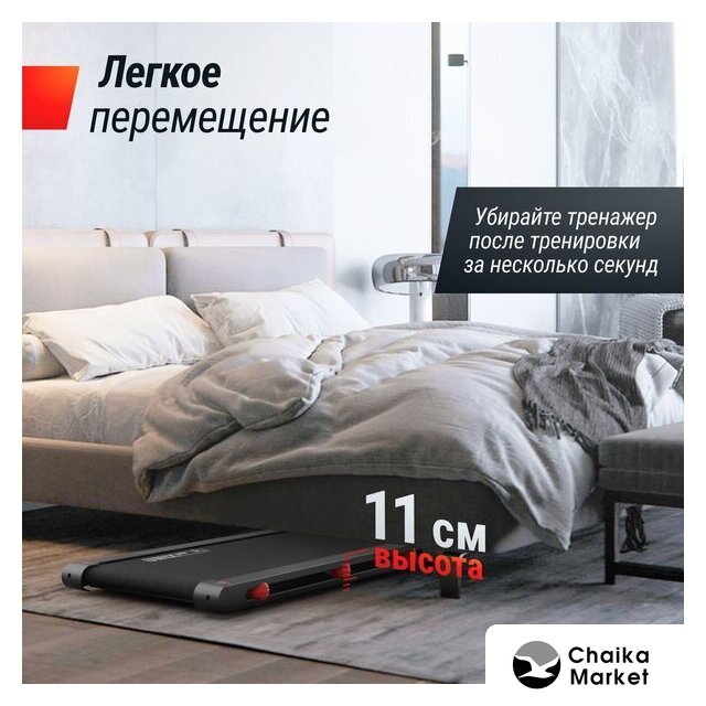 электрическая беговая дорожка, без регулировки угла наклона, полотно: 39×107 см, скорость движения: 1–8 км/ч, без программ тренировок