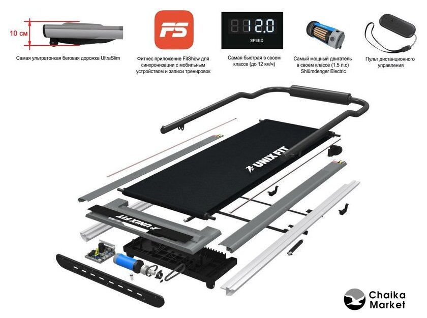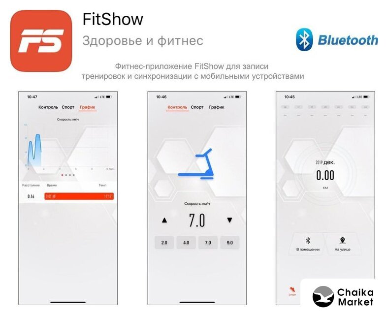 Особенности | Присутствует опция управления беговой дорожкой и сохранения тренировок через русифицированное приложение Fitshow. |