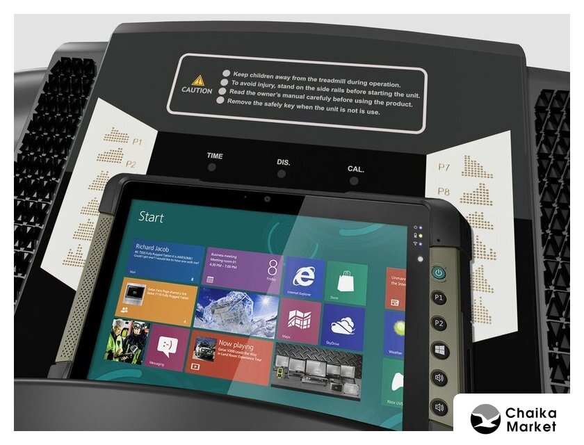 электрическая беговая дорожка, ручная ступенчатая регулировка угла наклона, полотно: 43×105 см, скорость движения: 1–12 км/ч, 16 программ тренировок