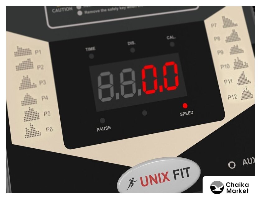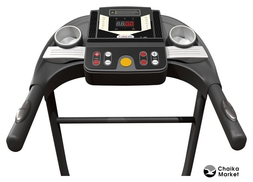 электрическая беговая дорожка, без регулировки угла наклона, полотно: 42×121 см, скорость движения: 1–12 км/ч