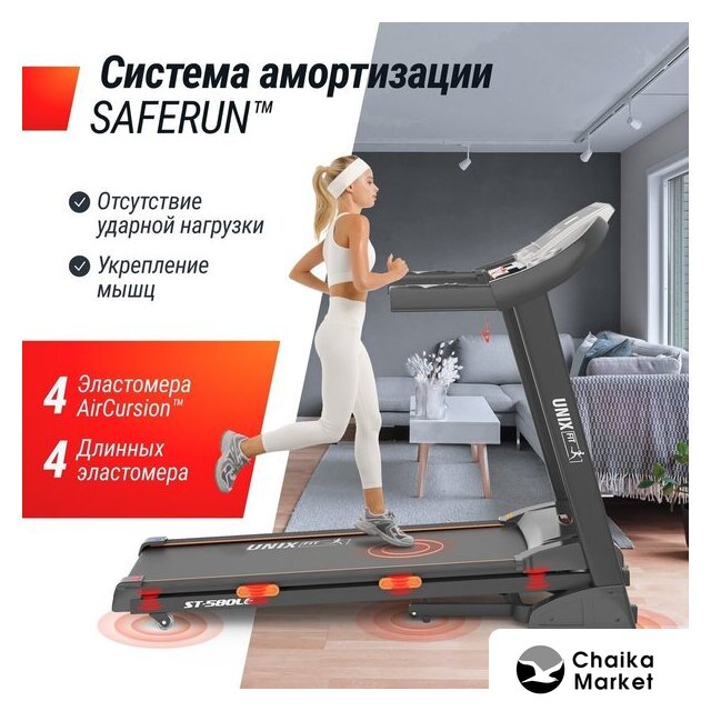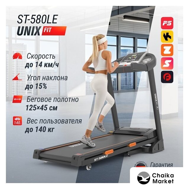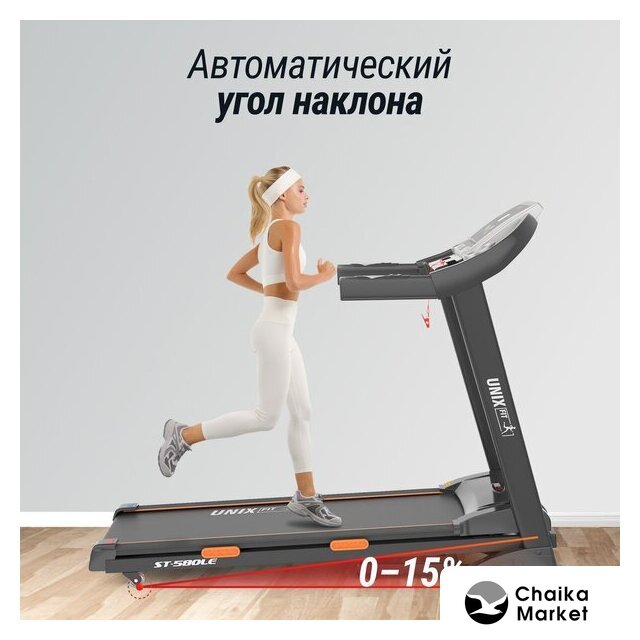 электрическая беговая дорожка, автоматическая регулировка угла наклона, полотно: 45×125 см, скорость движения: 1–16 км/ч, 12 программ тренировок