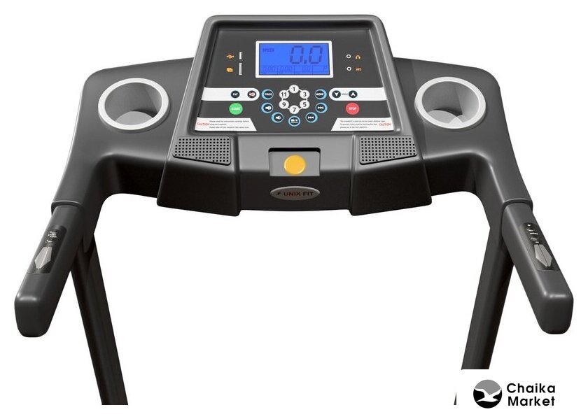 электрическая беговая дорожка, ручная ступенчатая регулировка угла наклона, полотно: 45×125 см, скорость движения: 1–14 км/ч, 15 программ тренировок